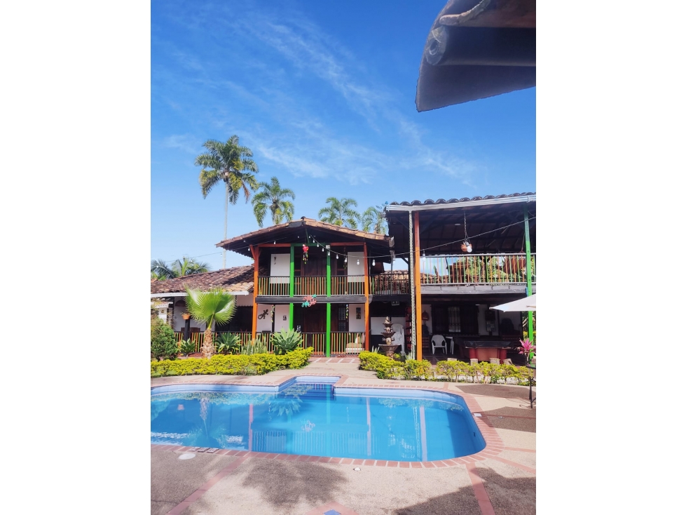 Se vende hermoso chalet en Montenegro via Pueblo tapao, a 2 kilometros del parque del cafe. Cuenta con dos casas la principal con 350 m2, 4 habitaciones, 4 baños, sala de estar, sala y comedor, cocina, terraza, se vende amoblada. La segunda casa de 160 m2 cuenta con 4 habitaciones, 2 baños, cocina integral, zona para ropas.